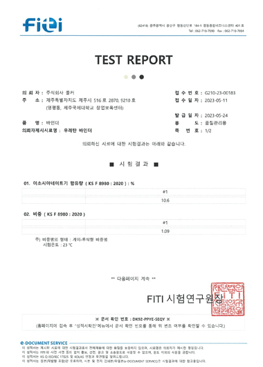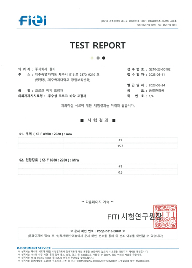 (주)콜커 칼라 코르크 탄성바닥재_시험성적서