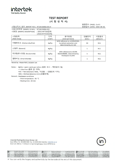 (주)콜커의 컬러 코르크 칩은 국제공인 시험인증원인 FITI의 종합 환경 분석 결과 카드늄, 납, 수은, 크롬 등의 중금속 함량이 허용기준 이하로 알루미늄, 코발트, 비소 등의 용출성 중금속, 프탈레이트 함량, PAHs 함량 또한 허용기준 이하의 테스트 결과가 나온 우수한 친환경소재입니다.